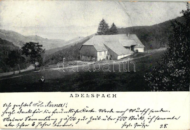 1898 Sainte-Marie-aux-Mines, Markirch; Hotel Adelsbach https://www.darabanth.com/hu/261-Gyorsarveres/261.0/Kepeslapok/Franciaorszag~400024/1898-Sainte-Marie-aux-Mines-Markirch-Hotel-Adelsbach~II1238820