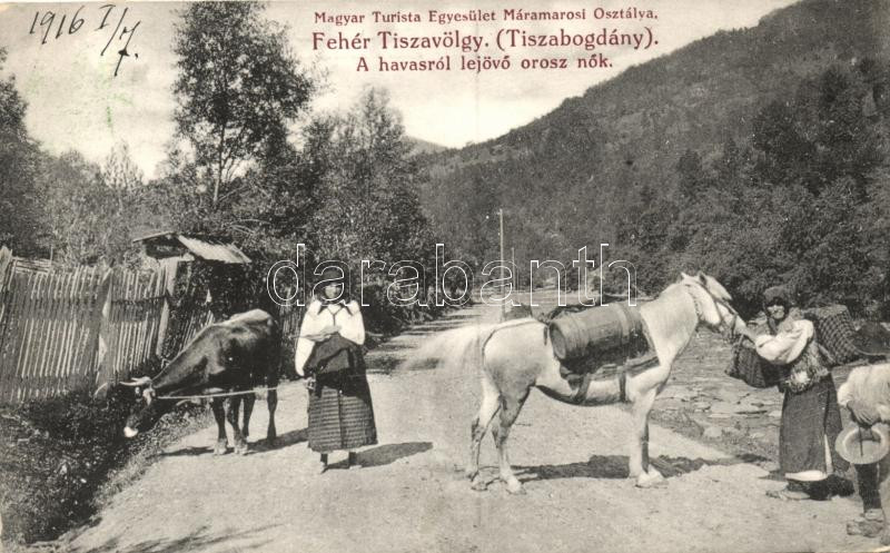 Tiszabogdány, Bohdan; Fehér Tiszavölgy, a havasról lejövő orosz nők. k... https://www.darabanth.com/hu/261-Gyorsarveres/261.0/Kepeslapok/Karpatalja~400010/Tiszabogdany-Bohdan-Feher-Tiszavolgy-a-havasrol-lejovo-orosz-nok-kiadja-Benko-Miklos-kC3~II1257345