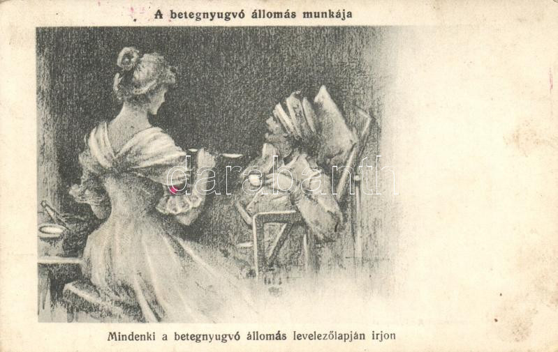 A betegnyugvó állomás munkája, Mindenki a betegnyugvó állomás levelező... https://www.darabanth.com/hu/261-Gyorsarveres/261.0/Kepeslapok/Katonai~400076/A-betegnyugvo-allomas-munkaja-Mindenki-a-betegnyugvo-allomas-levelezolapjara-irjon--WWI~II1295037