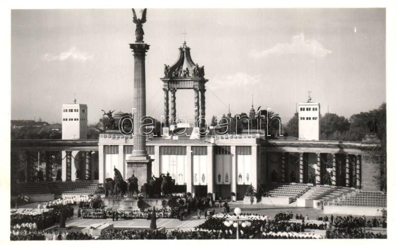 Leírás: 1938 Budapest XIV. Hősök tere, a XXXIV. Nemzetközi Eucharisztikus Kongresszus főoltára
