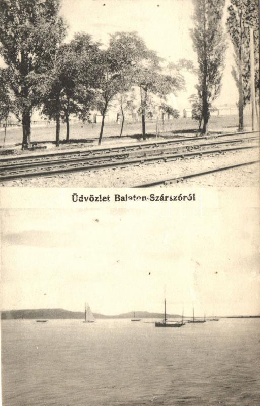 Leírás: Balatonszárszó, vasúti sínek, vitorlások a tavon (kis szakadás / small tear)