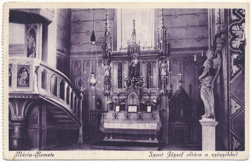 Budapest II. Máriaremete, Szent József oltára a szószékkel, belső (EK) https://www.darabanth.com/hu/261-Gyorsarveres/261.0/Kepeslapok/Magyarorszag~400006/Budapest-II-Mariaremete-Szent-Jozsef-oltara-a-szoszekkel-belso-EK~II1244269