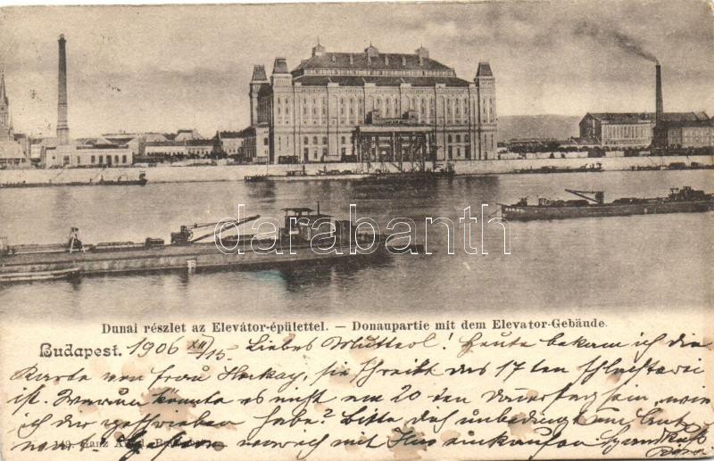 Budapest IX. Elevátor épület, uszályok, kiadja Ganz Antal (EK) https://www.darabanth.com/hu/261-Gyorsarveres/261.0/Kepeslapok/Magyarorszag~400006/Budapest-IX-Elevator-epulet-uszalyok-kiadja-Ganz-Antal-EK~II1294602