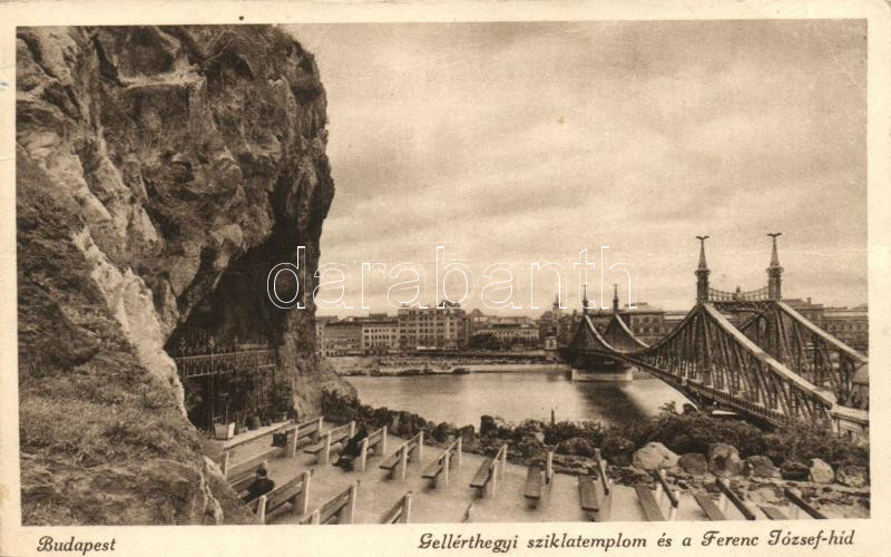 Budapest XI. Gellérthegyi sziklatemplom, Ferencz József híd (Rb) https://www.darabanth.com/hu/261-Gyorsarveres/261.0/Kepeslapok/Magyarorszag~400006/Budapest-XI-Gellerthegyi-sziklatemplom-Ferencz-Jozsef-hid-Rb~II1294828