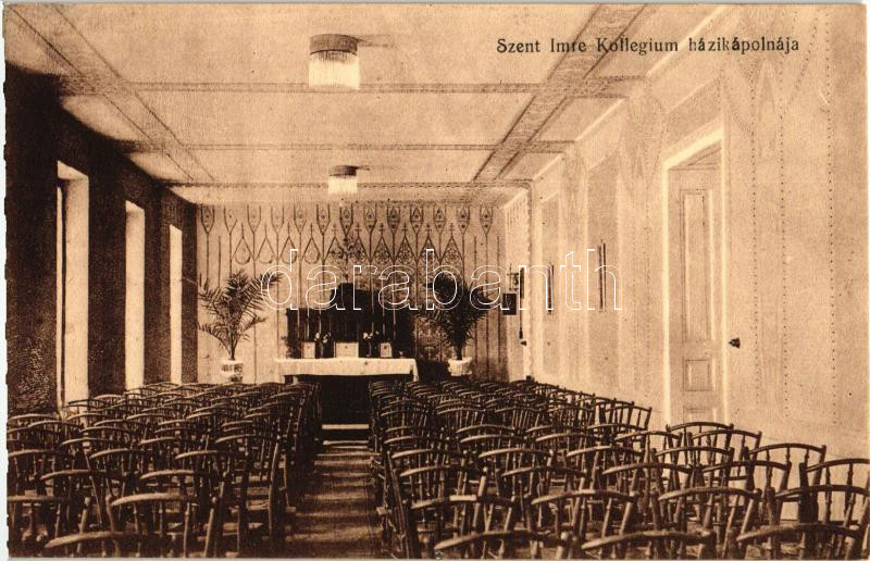 Budapest XI. Szent Imre Kollégium, házikápolna, belső; Fehérvári út 17... https://www.darabanth.com/hu/261-Gyorsarveres/261.0/Kepeslapok/Magyarorszag~400006/Budapest-XI-Szent-Imre-Kollegium-hazikapolna-belso-Fehervari-ut-17~II1294703