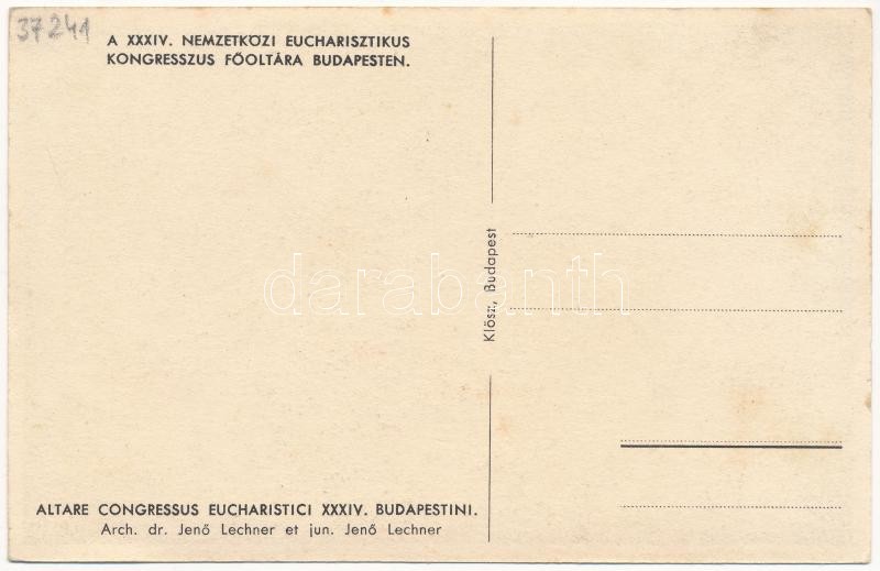 Leírás: Budapest XIV. Hősök tere, a XXXIV. Nemzetközi Eucharisztikus Kongresszus főoltára, s: Börtsök