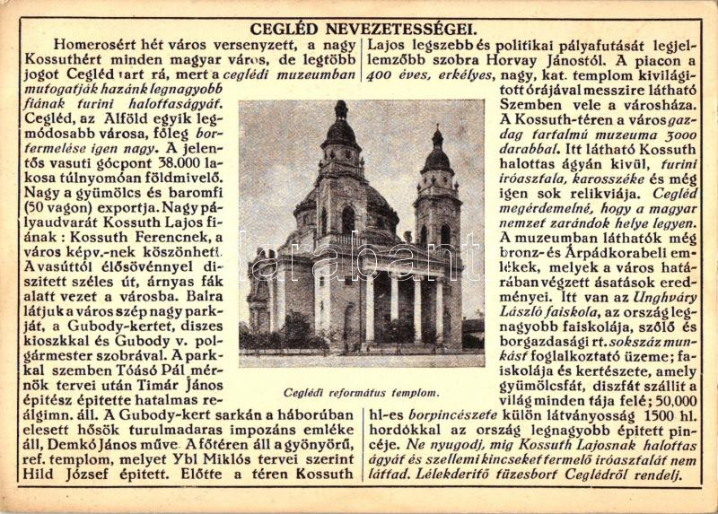 Leírás: Cegléd nevezetességei, Református templom; kiadja Farkasfalvi Kornél (EK)
