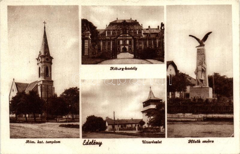 Edelény, Hősök szobra, templom, Koburg-kastély (Rb) https://www.darabanth.com/hu/261-Gyorsarveres/261.0/Kepeslapok/Magyarorszag~400006/Edeleny-Hosok-szobra-templom-Koburg-kastely-Rb~II1265866