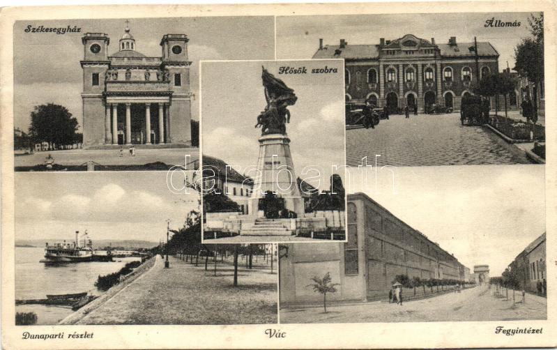 Vác, székesegyház, vasútállomás, Fegyintézet, Hősök szobra https://www.darabanth.com/hu/261-Gyorsarveres/261.0/Kepeslapok/Magyarorszag~400006/Vac-szekesegyhaz-vasutallomas-Fegyintezet-Hosok-szobra~II1263880