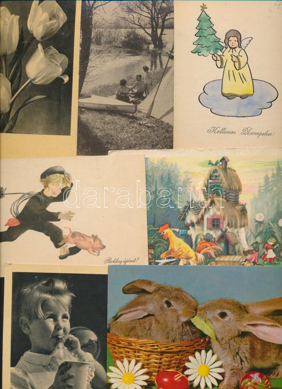 130 db MODERN üdvözlő motívumlap az 50-es és 60-as évekből, vegyes minőség; húsvét, virág, karácsony, újév / 130 modern greeting motive cards from the 50's and the 60's, mixed quality; Easter, flower, Christmas, New Year