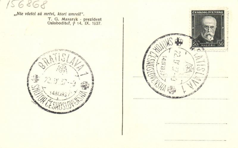 Leírás: Tomas Garrigue Masaryk, founder and first president of Czechoslovakia, 'Smútok Ceskoslovenska' So. Stpl. (EK)