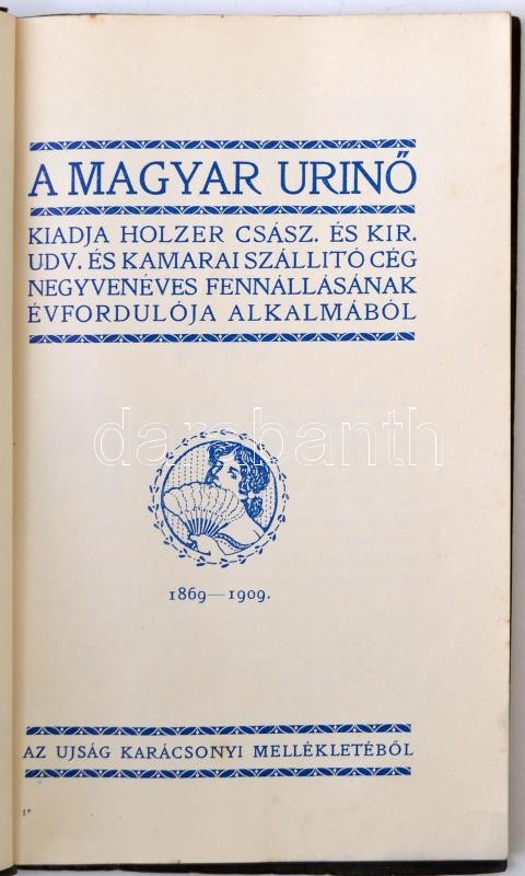 A magyar urinő. Kiadja a Holzer csász. és kir. udv. és kamarai szállító cég negyvenéves fennállásának évfordulója alkalmából. [Bp.], [1909], [Hornyánszky]. Kicsit kopott papírkötésben, jó állapotban.