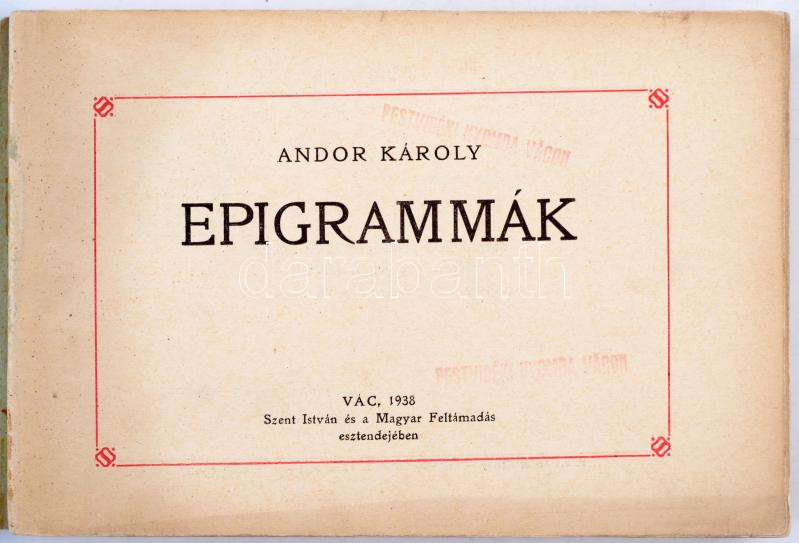 Andor Károly: Epigrammák. Vác, 1938, (Pestvidéki Ny.). 320 p. A szerz... https://www.darabanth.com/hu/261-Gyorsarveres/261.0/Konyvek/Konyvek-Egyeb-ritkasagok~43/Andor-Karoly-Epigrammak-Vac-1938-Pestvideki-Ny-320-p-A-szerzo-200-peldanyos-kulon~II1297232