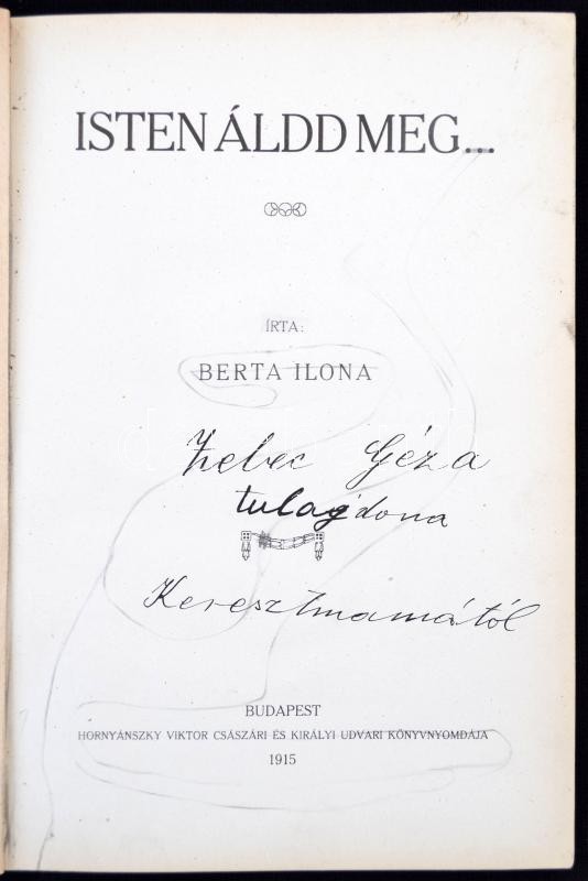 Berta Ilona: Isten áldd meg... Bp., 1915, Hornyánszky. Kicsit kopott f... https://www.darabanth.com/hu/261-Gyorsarveres/261.0/Konyvek/Konyvek-Egyeb-ritkasagok~43/Berta-Ilona-Isten-aldd-meg-Bp-1915-Hornyanszky-Kicsit-kopott-felvaszon-kotesben-jo-C3~II1289465