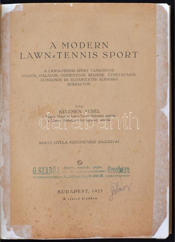 Kelemen Aurél: A modern Lawn-tennis sport. Budapest, 1925, szerző kiad... https://www.darabanth.com/hu/261-Gyorsarveres/261.0/Konyvek/Konyvek-Egyeb-ritkasagok~43/Kelemen-Aurel-A-modern-Lawn-tennis-sport-Budapest-1925-szerzo-kiadasa-Modern-egeszvaszon-k~II1293360