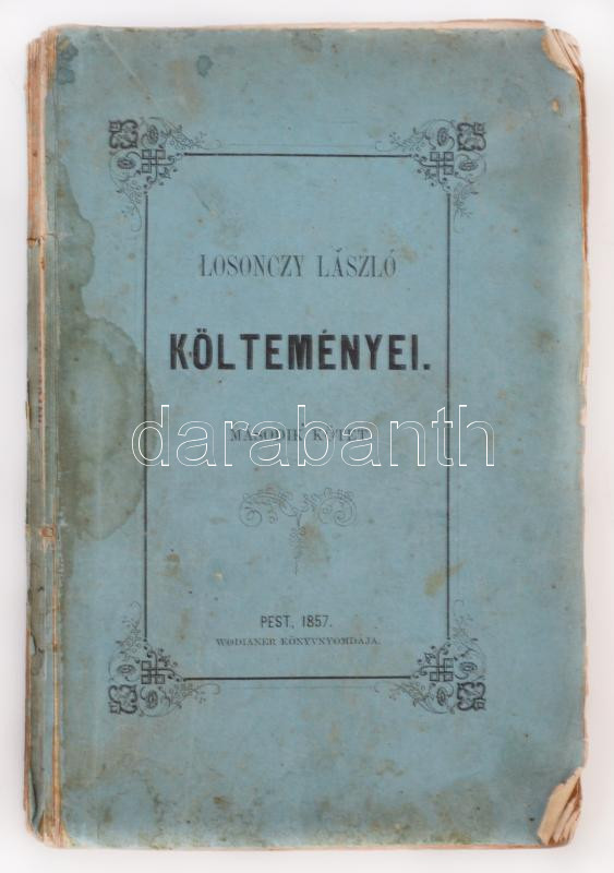 Losonczy László költeményei. Második kötet. Pest, 1857, Wodianer. 192 ... https://www.darabanth.com/hu/261-Gyorsarveres/261.0/Konyvek/Konyvek-Egyeb-ritkasagok~43/Losonczy-Laszlo-koltemenyei-Masodik-kotet-Pest-1857-Wodianer-192-p-Eredeti-kiadoi-papC3~II1259906