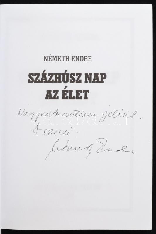 Németh Endre. Százhúsz nap az élet. Bp., 2002, Hazánk. Kiadói papírköt... https://www.darabanth.com/hu/261-Gyorsarveres/261.0/Konyvek/Konyvek-Egyeb-ritkasagok~43/Nemeth-Endre-Szazhusz-nap-az-elet-Bp-2002-Hazank-Kiadoi-papirkotesben-Dedikalt-pel~II1248346