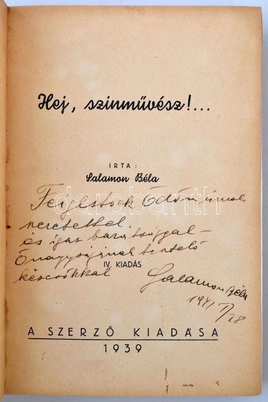 Salamon Béla: Hej színművész... Bp. 1939. Szerzői kiadás. Dedikált, el... https://www.darabanth.com/hu/261-Gyorsarveres/261.0/Konyvek/Konyvek-Egyeb-ritkasagok~43/Salamon-Bela-Hej-szinmuvesz-Bp-1939-Szerzoi-kiadas-Dedikalt-elso-kiadas-Rajzos-ki~II1287333