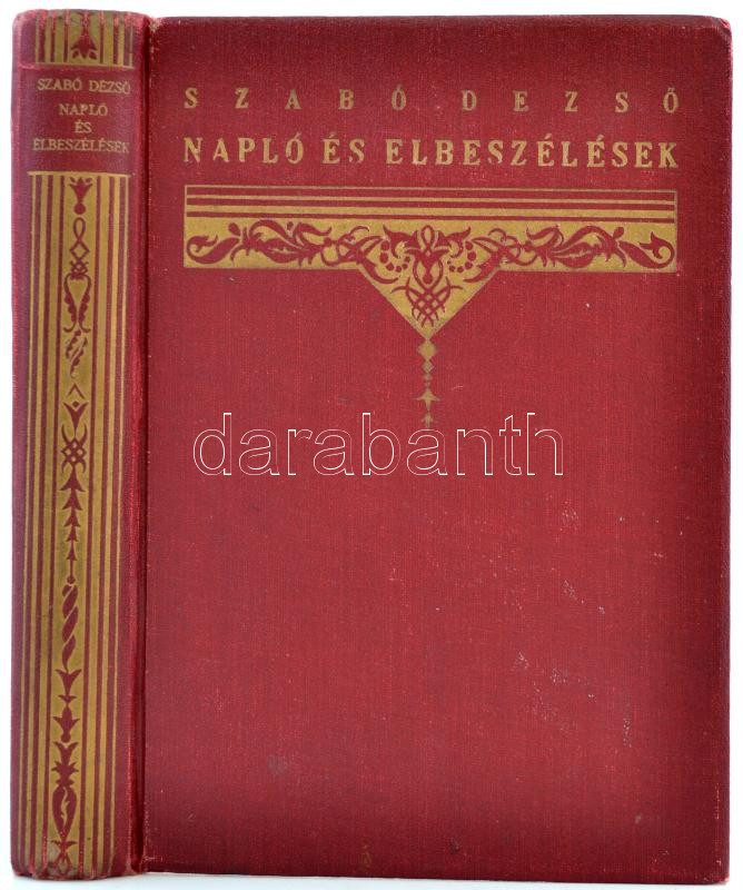 Szabó Dezső: Napló és elbeszélések. Budapest, 1918, Genius. Kiadói egé... https://www.darabanth.com/hu/261-Gyorsarveres/261.0/Konyvek/Konyvek-Egyeb-ritkasagok~43/Szabo-Dezso-Naplo-es-elbeszelesek-Budapest-1918-Genius-Kiadoi-egeszvaszon-kotesben~II1288065