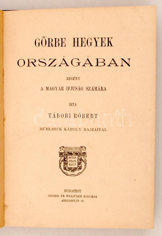 Tábori Róbert: Görbe hegyek országában. Bp., [1904], Singer és Wolfner... https://www.darabanth.com/hu/261-Gyorsarveres/261.0/Konyvek/Konyvek-Egyeb-ritkasagok~43/Tabori-Robert-Gorbe-hegyek-orszagaban-Bp-1904-Singer-es-Wolfner-Kesobbi-vaszonkotC3~II1260872