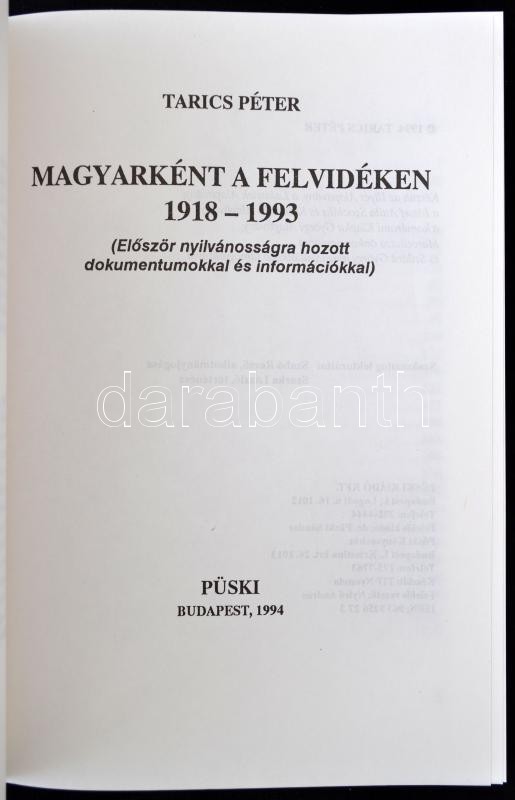 Tarics Péter: Magyarként a Felvidéken 1918-1993. Budapest, 1994, Püski... https://www.darabanth.com/hu/261-Gyorsarveres/261.0/Konyvek/Konyvek-Egyeb-ritkasagok~43/Tarics-Peter-Magyarkent-a-Felvideken-1918-1993-Budapest-1994-Puski-Kiadoi-papir-kotesbe~II1288052