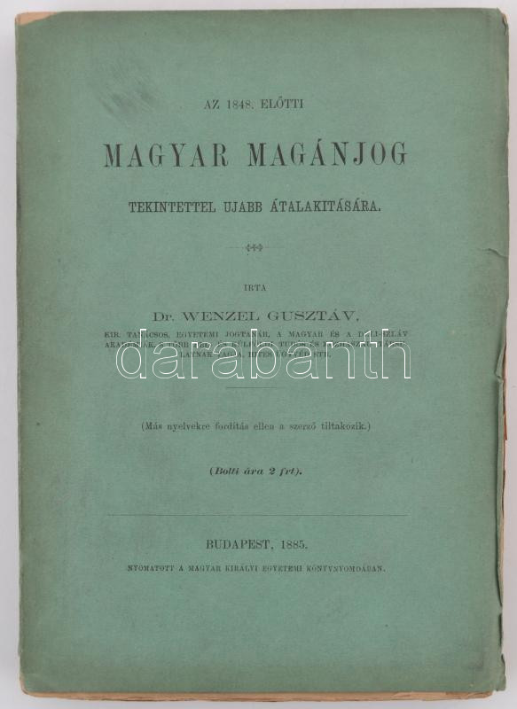 Wenzel Gusztáv: Az 1848. előtti magyar magánjog. Tekintettel újabb átalakítására. Bp., 1885. Egyetemi Nyomda. XX+422 p. Kiadói papírkötésben, jó állapotban. Felvágatlan példány.