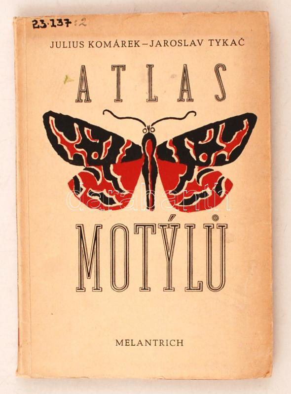 Komárek, Julius; Tykač, Jaroslav: Atlas motýlů. Prága, 1952, Melantrich. Színes illusztrációkkal. Kicsit kopott papírkötésben, egyébként jó állapotban.