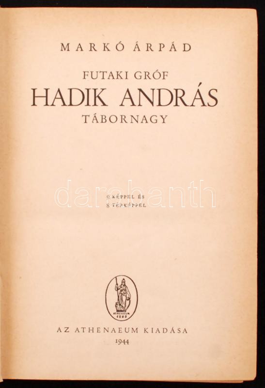 Bp., 1944, Athenaeum... https://www.darabanth.com/hu/261-Gyorsarveres/261.0/Konyvek/Konyvek-Tortenelem~33/Marko-Arpad-Futaki-grof-Hadik-Andras-tabornagy--Bp-1944-Athenaeum-317-l-Aranyozott-kis~II1291968