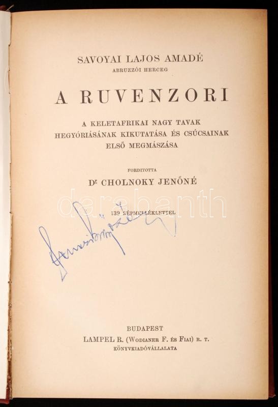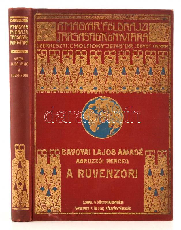Savoyai Lajos Amadé: A Ruvenzori. A keletafrikai nagy tavak hegyóriásának kikutatása és csúcsainak első megmászása. Bp., é. n., Lampel R. (A Magyar Földrajzi Társaság Könyvtára). Kicsit laza, kopott, díszes, aranyozott vászonkötésben.