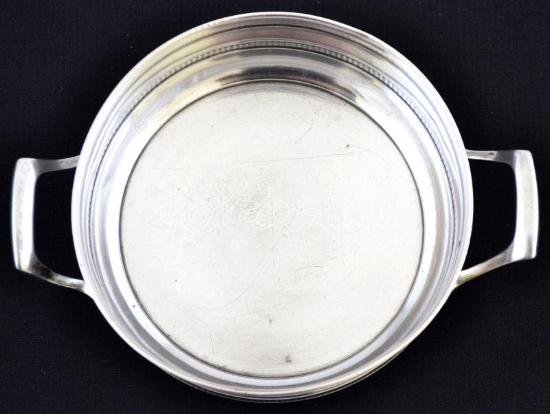 Ezüst füles kínálótálka, Ag., nettó:159,8gr., jelzett, 3,5x11cm/Silver Bowl, Ag., net. 159,8gr, marked, 3,5x11cm