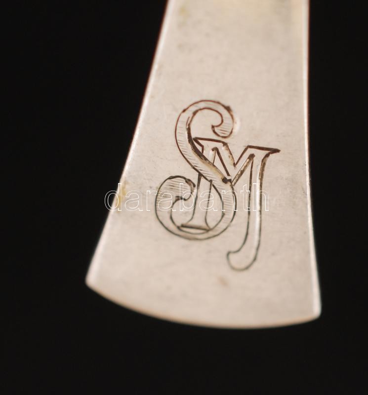 Ezüst kávéskanál, 6db (ebből 1db monogramos) + cukorcsipesz, Ag., nett... https://www.darabanth.com/hu/261-Gyorsarveres/261.0/Nemesfem-Disztargyak-Orak-es-Ekszerek/Nemesfem-Disztargyak-Orak-es-Ekszerek~200053/Ezust-kaveskanal-6db-ebbol-1db-monogramos-plus-cukorcsipesz-Ag-netto-124-5gr-jelzett-Sil~II1296942