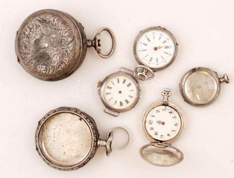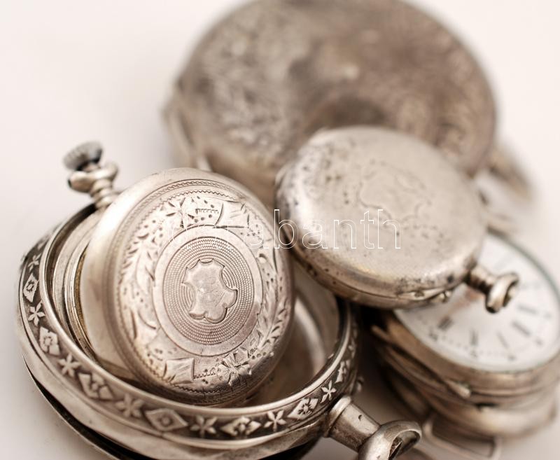 Leírás: Ezüst zsebóra tokok, hibás, hiányos órák, Ag.,bruttó:137,9gr., egy részük jelzett, nem működik,6db