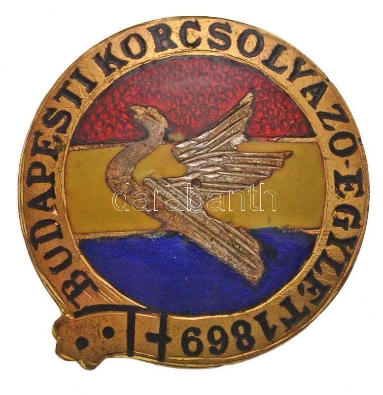 ~1920. "Budapesti Korcsolyázó Egylet 1869" aranyozott, zomán... https://www.darabanth.com/hu/261-Gyorsarveres/261.0/Numizmatika/Falerisztika-Kituntetesek-jelvenyek~300017/7E1920-Budapesti-Korcsolyazo-Egylet-1869-aranyozott-zomancozott-fem-jelveny-24mm-T2~II1288628