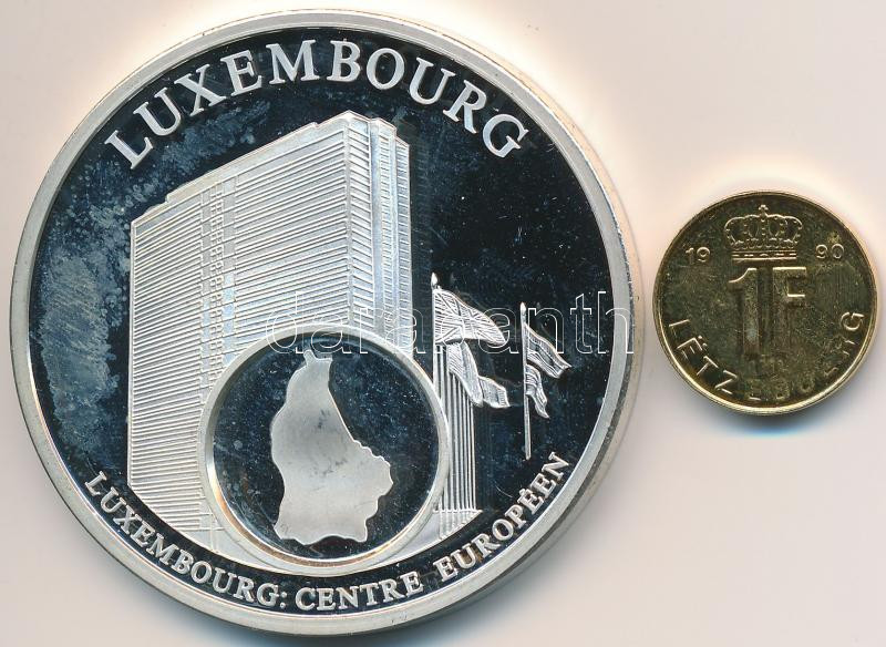 Leírás: Luxemburg DN "Európai valuták" ezüstözött Br emlékérem, "1990. 1Fr" aranyozott érmével (50mm) T:PP ujjlenyomat,2