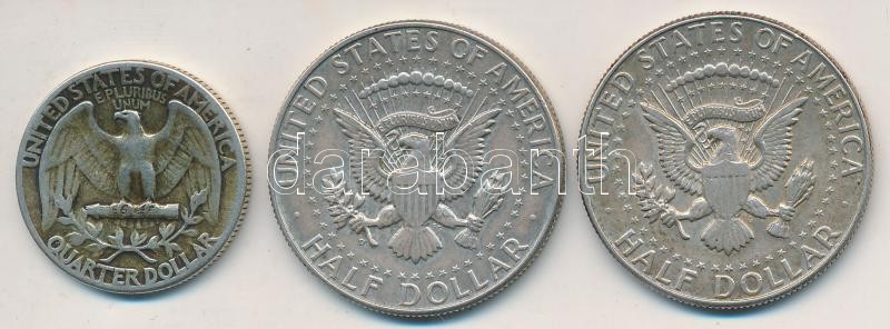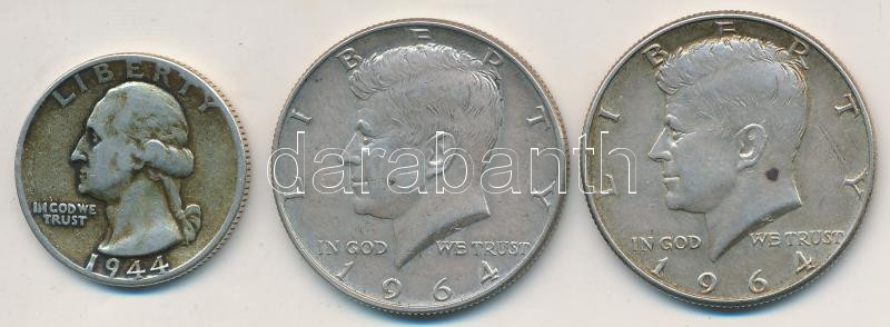 Amerikai Egyesült Államok 1944. 1/4$ Ag "Washington" + 1964. 1/2$ Ag "Kennedy" (2xklf) T:2,2-