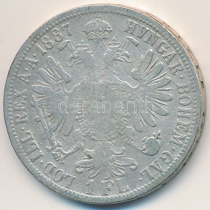 Austria 1887. ... https://www.darabanth.com/hu/261-Gyorsarveres/261.0/Numizmatika/Kulfoldi-fem-es-ezustpenzek~300013/Ausztria-1887-1Fl-Ag-Ferenc-Jozsef-T2-3--Austria-1887-1-Florin-Ag-Franz-Joseph-CVF-F~II1297964