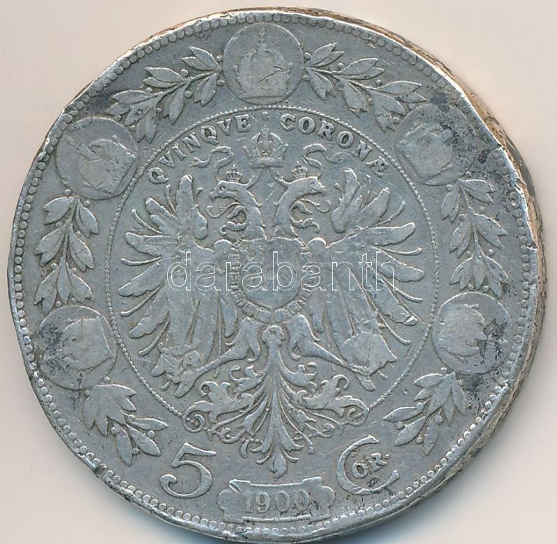 Austria 1900. ... https://www.darabanth.com/hu/261-Gyorsarveres/261.0/Numizmatika/Kulfoldi-fem-es-ezustpenzek~300013/Ausztria-1900-5K-Ag-Ferenc-Jozsef-T3-ph--Austria-1900-5-Corona-Ag-Franz-Joseph-CF-edge-err~II1275117