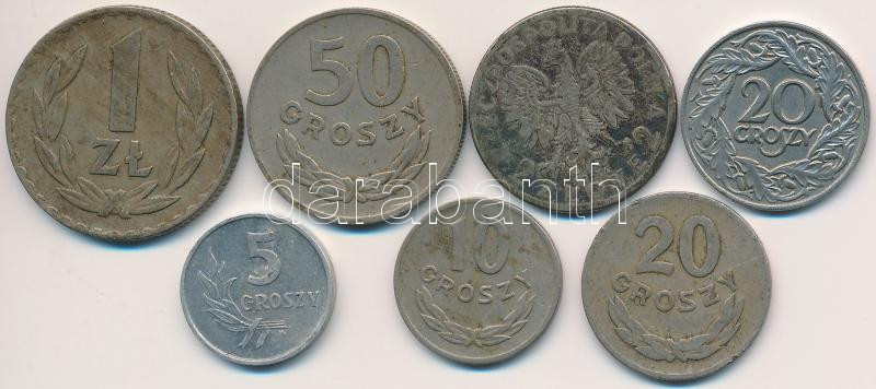 Leírás: Lengyelország 1923. 20gr Ni + 1934. 2Zl Ag + 1949. 10gr Cu-Ni + 20gr Cu-Ni + 50gr Cu-Ni + 1Zl Cu-Ni + 1958. 5gr Al T:vegyes