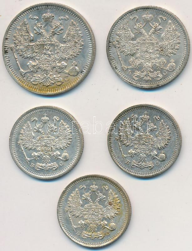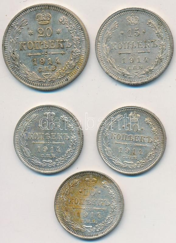 Leírás: Orosz Birodalom 1914. 10k Ag (3x) + 15k Ag + 20k Ag T:2 patina