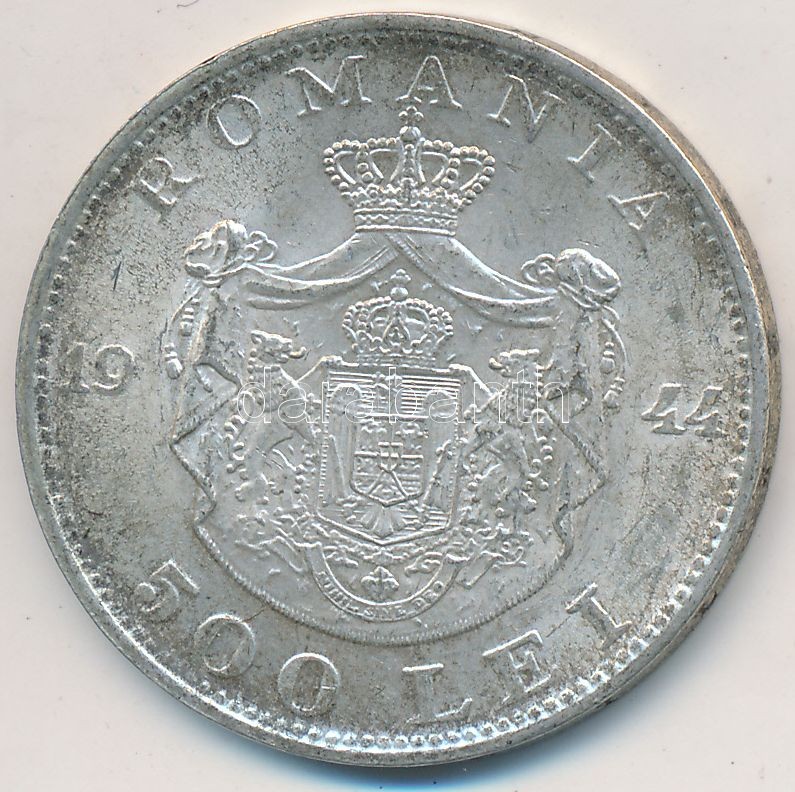 Romania 1944. 500 Lei Ag C:... https://www.darabanth.com/hu/261-Gyorsarveres/261.0/Numizmatika/Kulfoldi-fem-es-ezustpenzek~300013/Romania-1944-500L-Ag-T2-ph-kis-patina--Romania-1944-500-Lei-Ag-CXF-edge-error-small-patina~II1289740