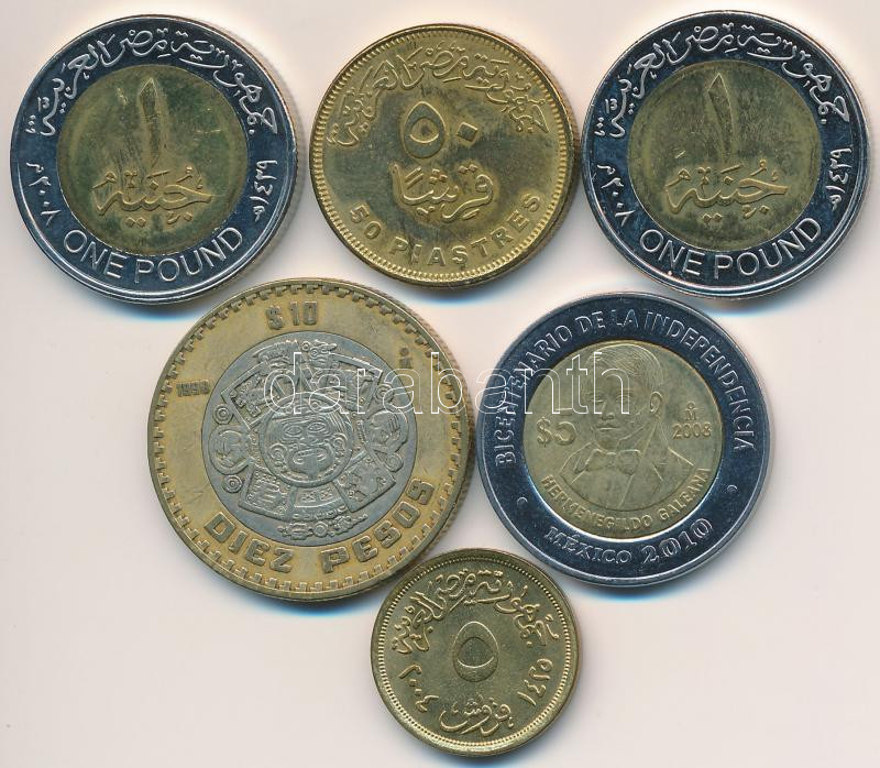 Mixed: Egypt 2004. 5 Piastres + 2008. 50 Piastres + 1 Pound (2x) + Mexico 1998. 10 Pesos + 2010. 5 Pesos C:XF