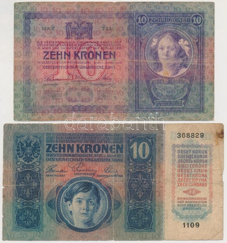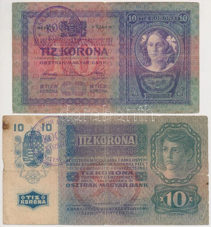 Leírás: 1904. 10K + 1915. 10K mindkettő "KOMÁROM MEGYE KOCS KÖZSÉG GESZTESI-JÁRÁS" felülbélyegzéssel T:III-