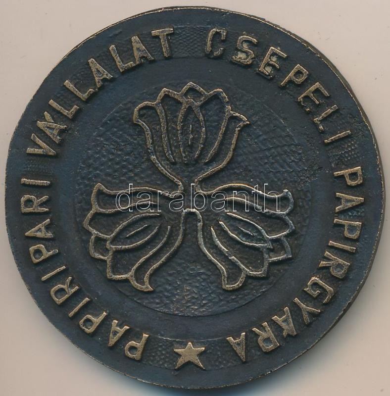 1973. "Papíripari Vállalat Csepeli Papírgyára / Kiváló gyár"... https://www.darabanth.com/hu/261-Gyorsarveres/261.0/Numizmatika/Magyar-emlekveretek-plakettek~300009/1973-Papiripari-Vallalat-Csepeli-Papirgyara-Kivalo-gyar-ketoldalas-Br-erem-73-5mm-T~II1273428