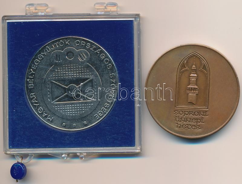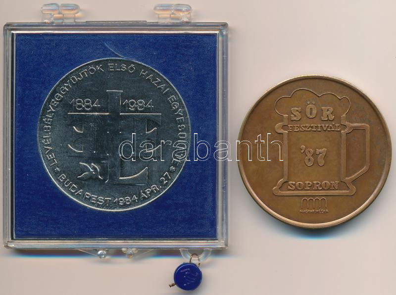 Leírás: 1984. "MÉE - Levélbélyeggyűjtők Első Hazai Egyesülete" fém emlékérem (42,5mm) + 1987. "Sör Fesztivál Sopron / Soproni Ünnepi Hetek" Br emlékérem (42,5mm) T:1-,2