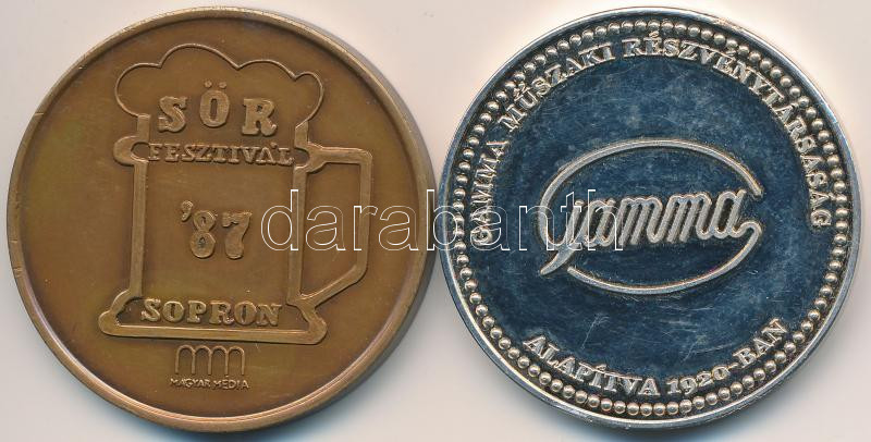 Leírás: 1987. "Sör Fesztivál Sopron / Soproni Ünnepi Hetek" Br emlékérem (42,5mm) + DN "Gamma Műszaki Részvénytársaság - Alapítva 1920-ban" fém emlékérem (42,5mm) T:2,2(PP)