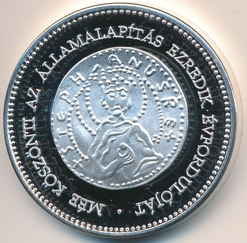 Leírás: 2000. "MÉE köszönti az államalapítás ezredik évfordulóját" ezüstözött fém emlékérem (42,5mm) T:PP