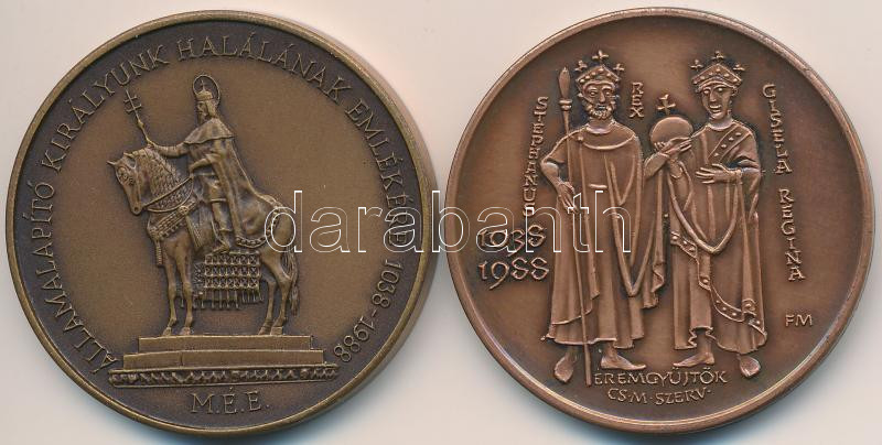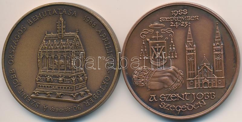 Bognár György (1944-) 1988. "MÉE - Államalapító királyunk emlékére / A Szent Jobb országos bemutatása" Br emlékérem (42,5mm) + Fritz Mihály (1947-) / Szabó Géza (1939-) 1988. "MÉE Szeged / A Szent Jobb Szegeden" Br emlékérem (42,5mm) T:1-,2