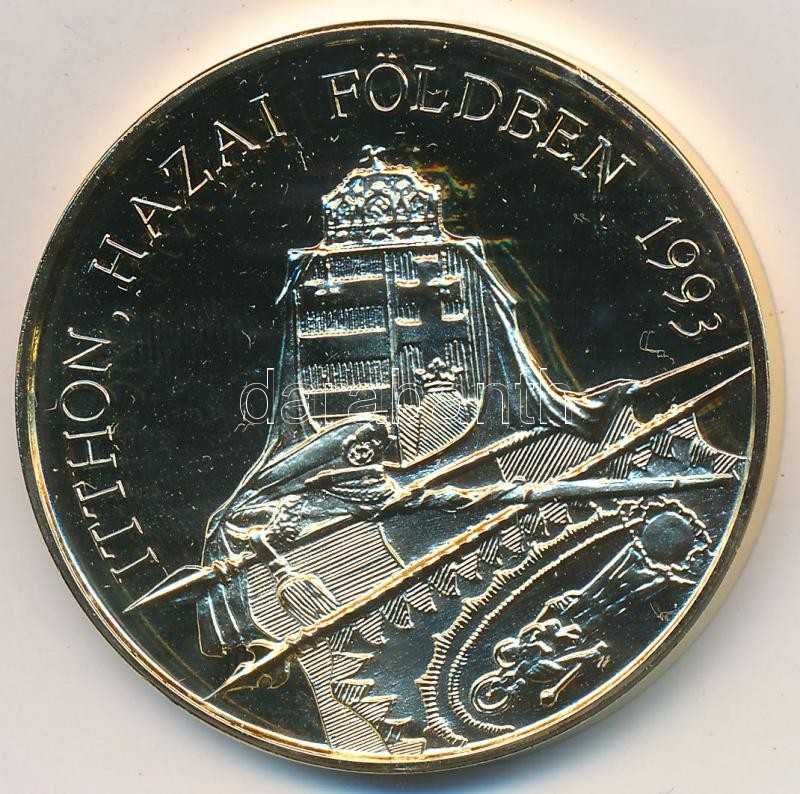 Bognár György (1944-) 1993. "Vitéz Nagybányai Horthy Miklós / Itthon hazai földben" aranyozott emlékérem tanúsítvánnyal (42,5mm) T:PP kis felületi karc