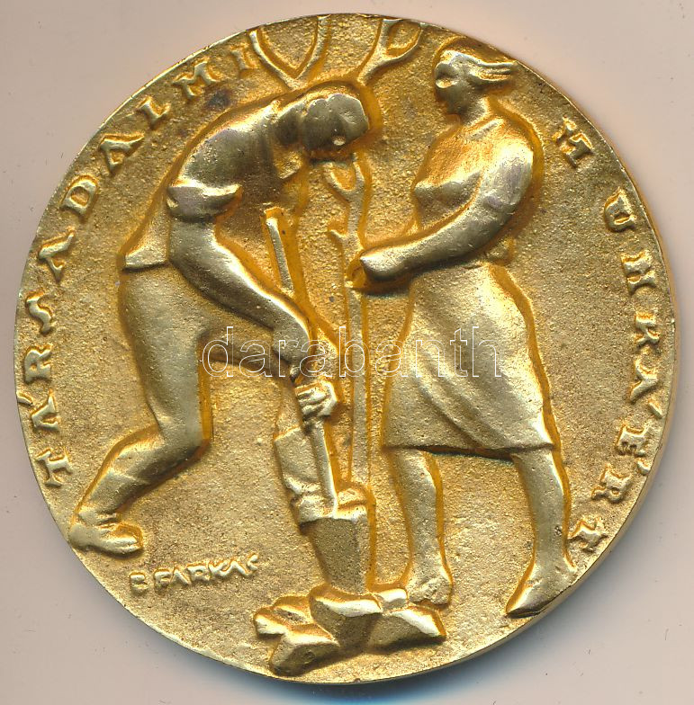 Boldogfai Farkas Sándor (1907-1970) / Vidéky Brigitta (1911-) DN" Társadalmi Munkáért / Nagykanizsa Városi Tanácstól" aranyozott Br emlékérem (63,5mm) T:2