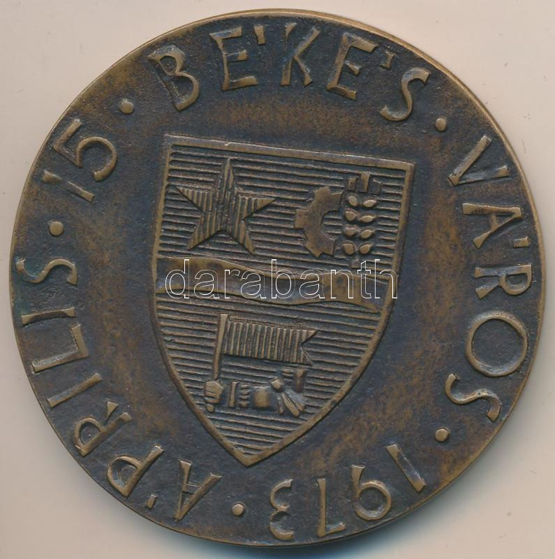 Leírás: Csíkszentmihályi Róbert (1940-) 1973. "Városunkért / Békés város április 15." kétoldalas Br emlékérem (79mm) T:2